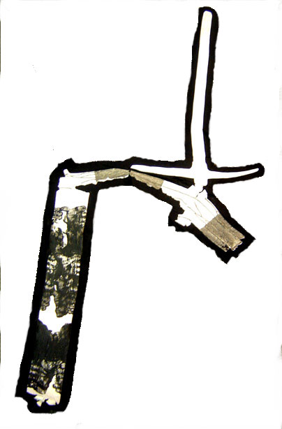Le tissu est à la fin découpé en suivant les limites imposées par l’image de l’objet avec une marge suffisante pour faciliter la découpe et surtout pour faire signe (influence Fernand Léger).