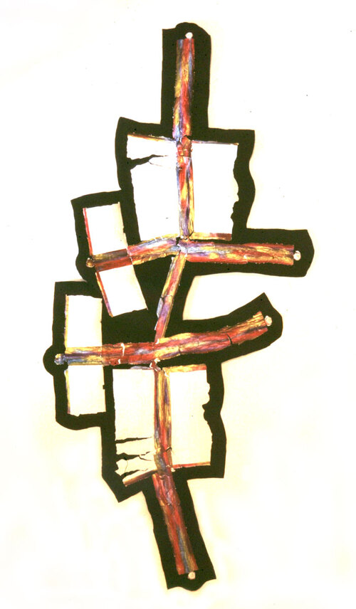 Ils sont alors collés au sol, sur du papier coloré pour les premiers puis sur du tissu noir.