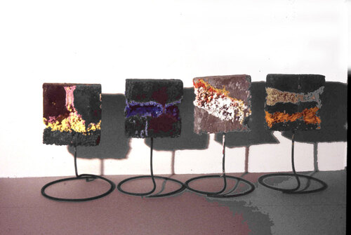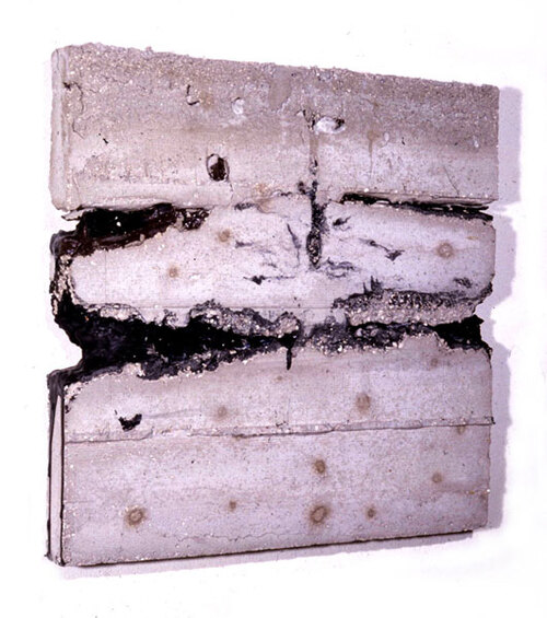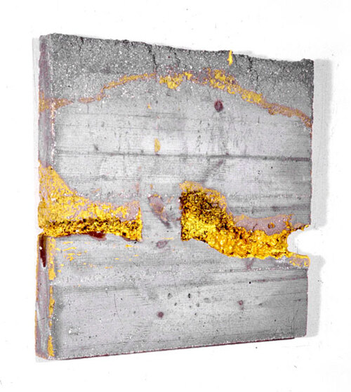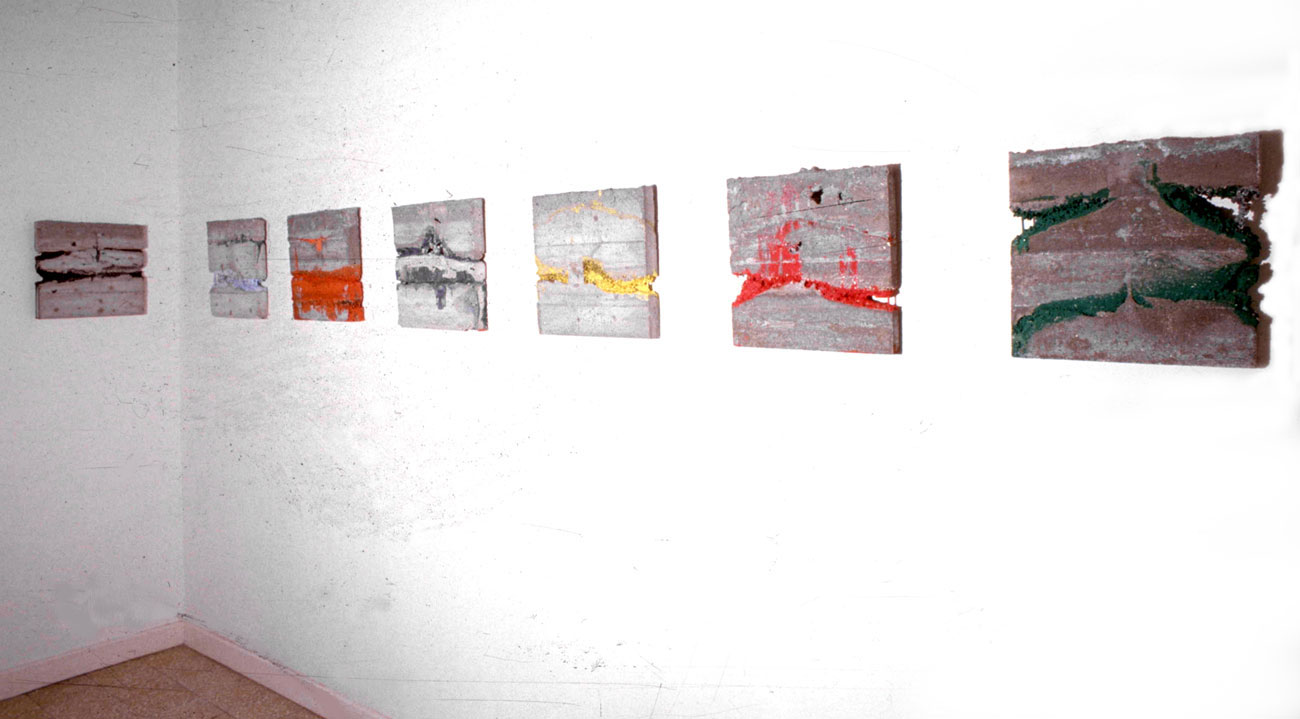Ciment gris, ciment blanc, fer, tissu, peintures