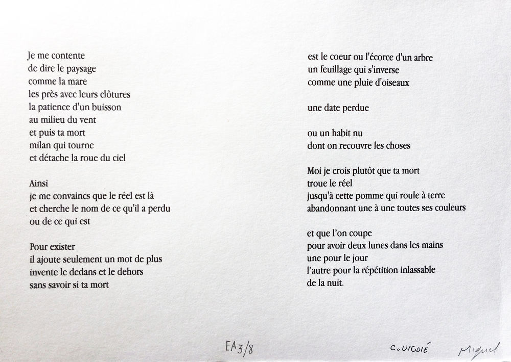"Ta mort Milan" a été réalisé en 21 exemplaires plus 8 exemplaires E.A aux éditions "Les cahiers du Museur" collection à côté - 2020