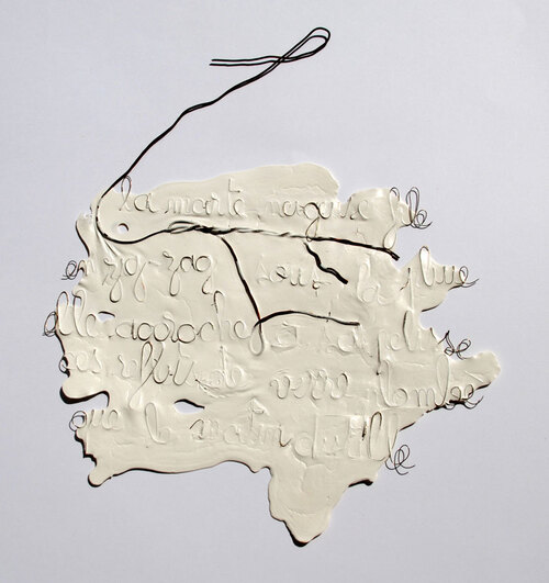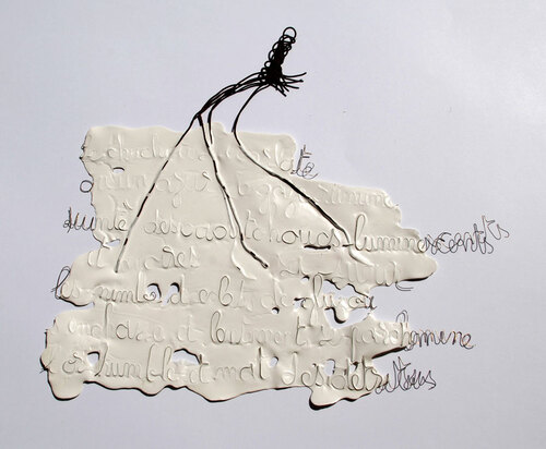 Travaux issus d’un atelier écriture à la bibliothèque de Grasse, dirigé par Raphaël Monticelli à partir des oeuvres intitulées "amuse gueule et autres trompe la mort" présentées par Martin Miguel. (trois exemplaires, 1994)