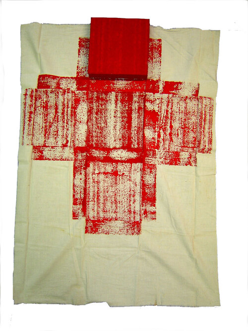 Produire des formes sur de la toile libre confère à celle-ci le statut d’outil de production de l’image car sa souplesse modifie les formes ou permet l’enrobage/coloration des volumes.