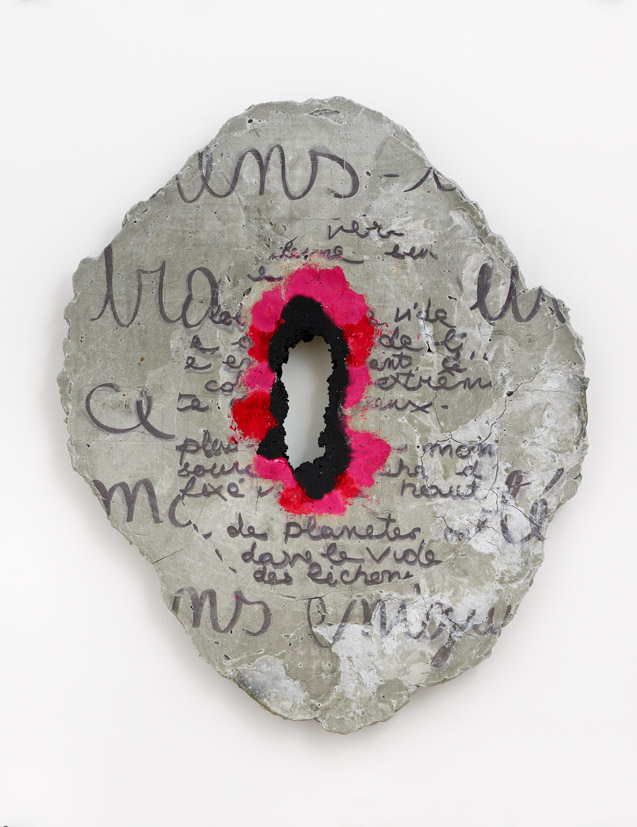 Texte déposé à l’envers sur un support plastique et sucé par le ciment.